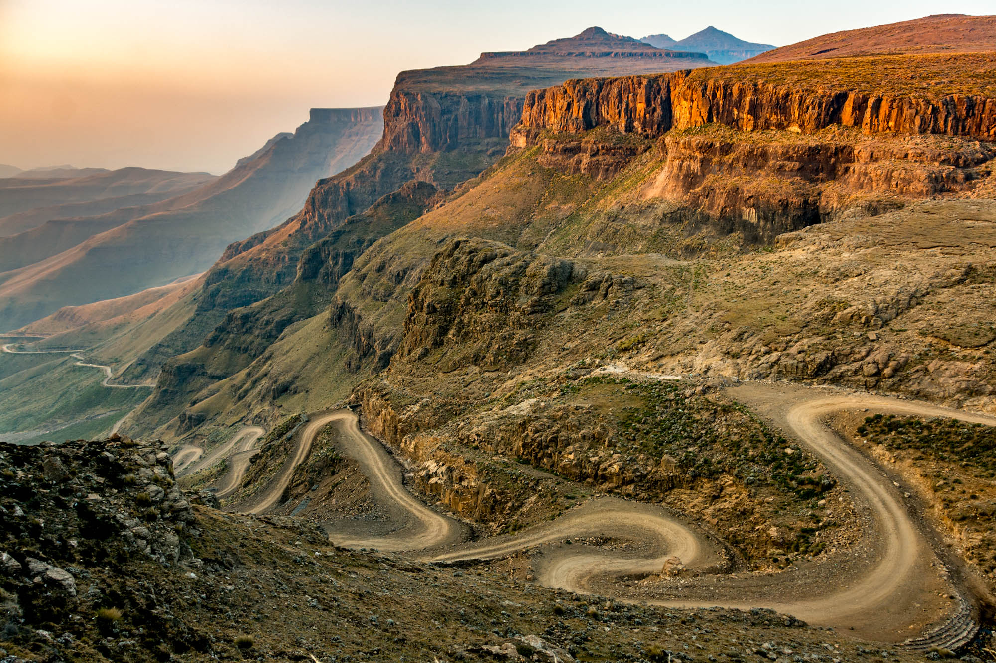 En empruntant cette route vertigineuse (mais pas très difficile), on comprend mieux le surnom de « Royaume dans le ciel » du Lesotho.