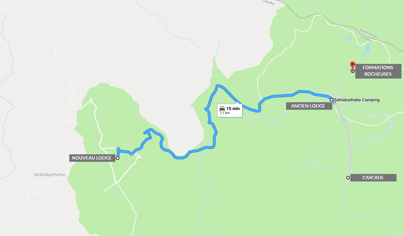 Nous commençons par emprunter la piste du parc qui rejoint l’ancien lodge, en cours de réhabilitation et le « terrain de camping ». L’estimation de Google est optimiste et il faut plutôt une bonne demi-heure pour la parcourir. Les paysages sont juste magnifiques.
