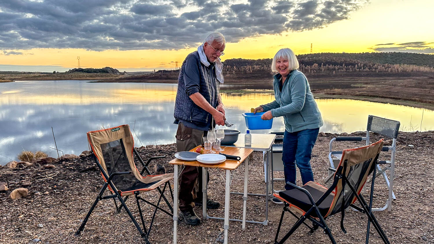 Réveil matinal et frais au camping après une bonne nuit. Aujourd’hui longue route un peu ennuyeuse jusqu’à notre joli bivouac de ce soir près de Merida au bord du lac d’Alange. 1000 kilomètres parcourus depuis le départ, plus que 2700 avant la frontière mauritanienne !!