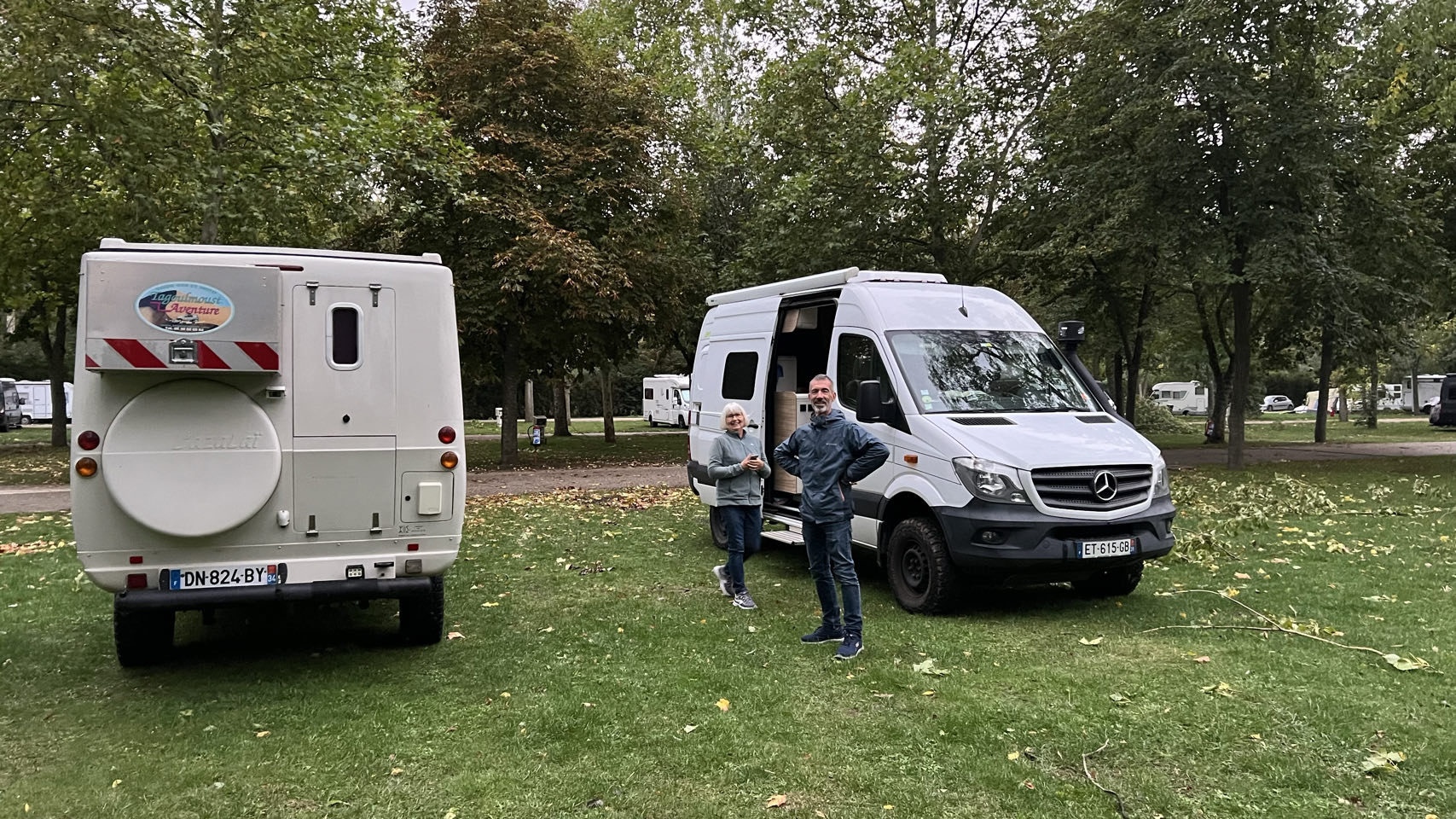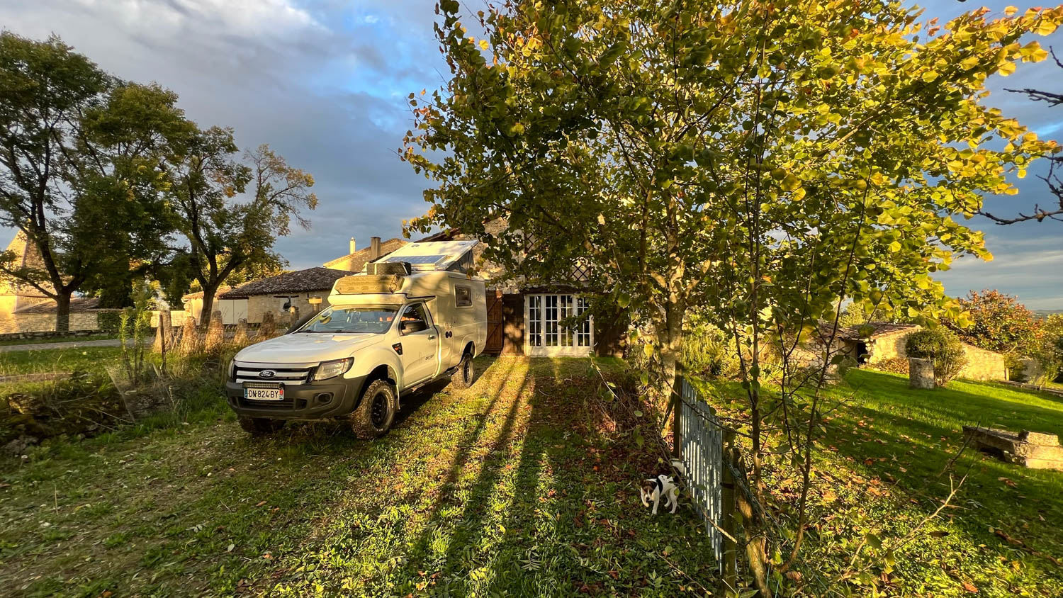 Départ de Plieux vers midi avec 3 heures de retard 🥴. Nous laissons Philippe qui sera le premier gardien de Toupie et Yûka… Et nous trouvons rapidement la pluie sur la route vers les Pyrénées. Nuages , tempêtes de vent et furtives éclaircies jalonneront tout notre parcours. Arrivée avec le soleil au camping de Burgos vers 19h00 où nous retrouvons Véro et Claude. Paella sympa au restaurant du camping et dodo.