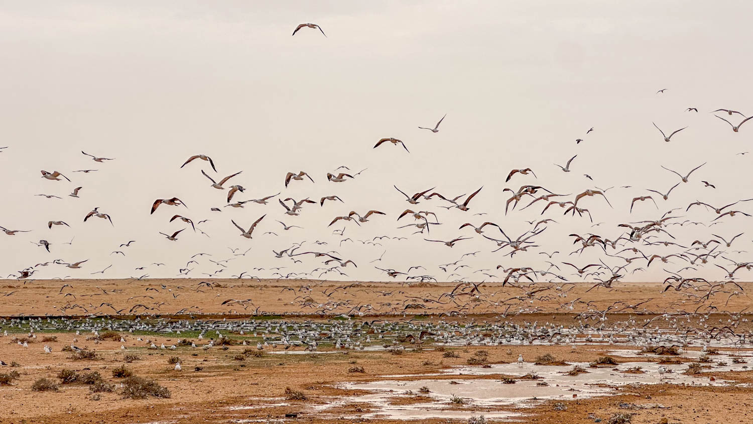 Réveil et matinée tranquille au camping. Nous partons vers 12h30 pour Dakhla. Le vent est un peu tombé ce matin, c’est agréable. Arrêt au petit restaurant de la veille pour le déjeuner. Puis cap sur la région Dakhla. 350 kms environ de route monotone. Le paysage est désertique. Plus on va vers le sud plus on voit des postes militaires et tout à coup des mouettes par milliers…