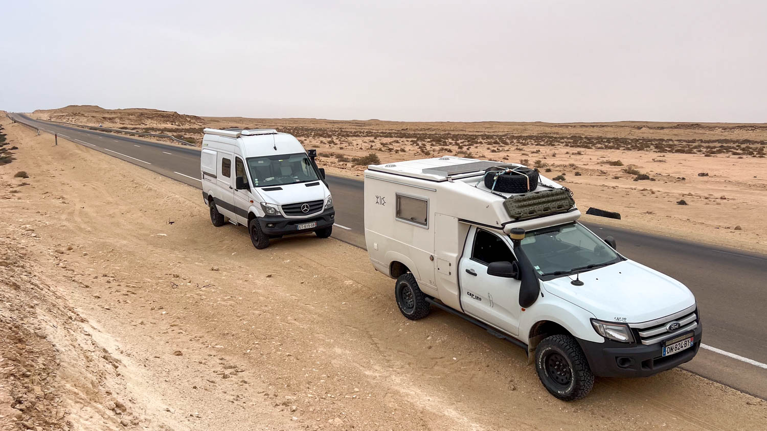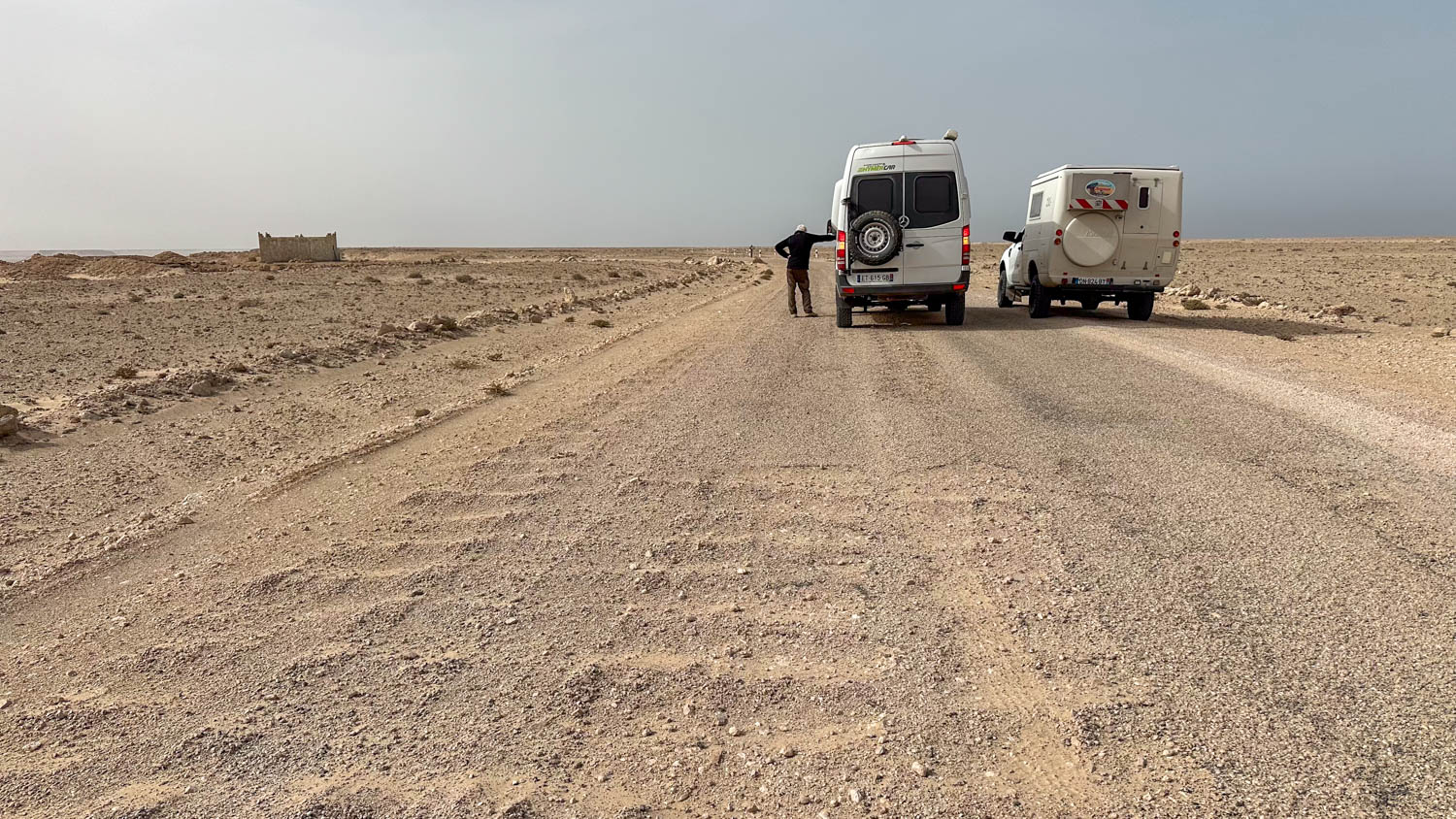 Le programme de la journée devait être cool : balade vers la dune blanche et ravitaillement à Dakhla en attendant de retrouver nos amis toulousains qui arrivaient dans la soirée.
