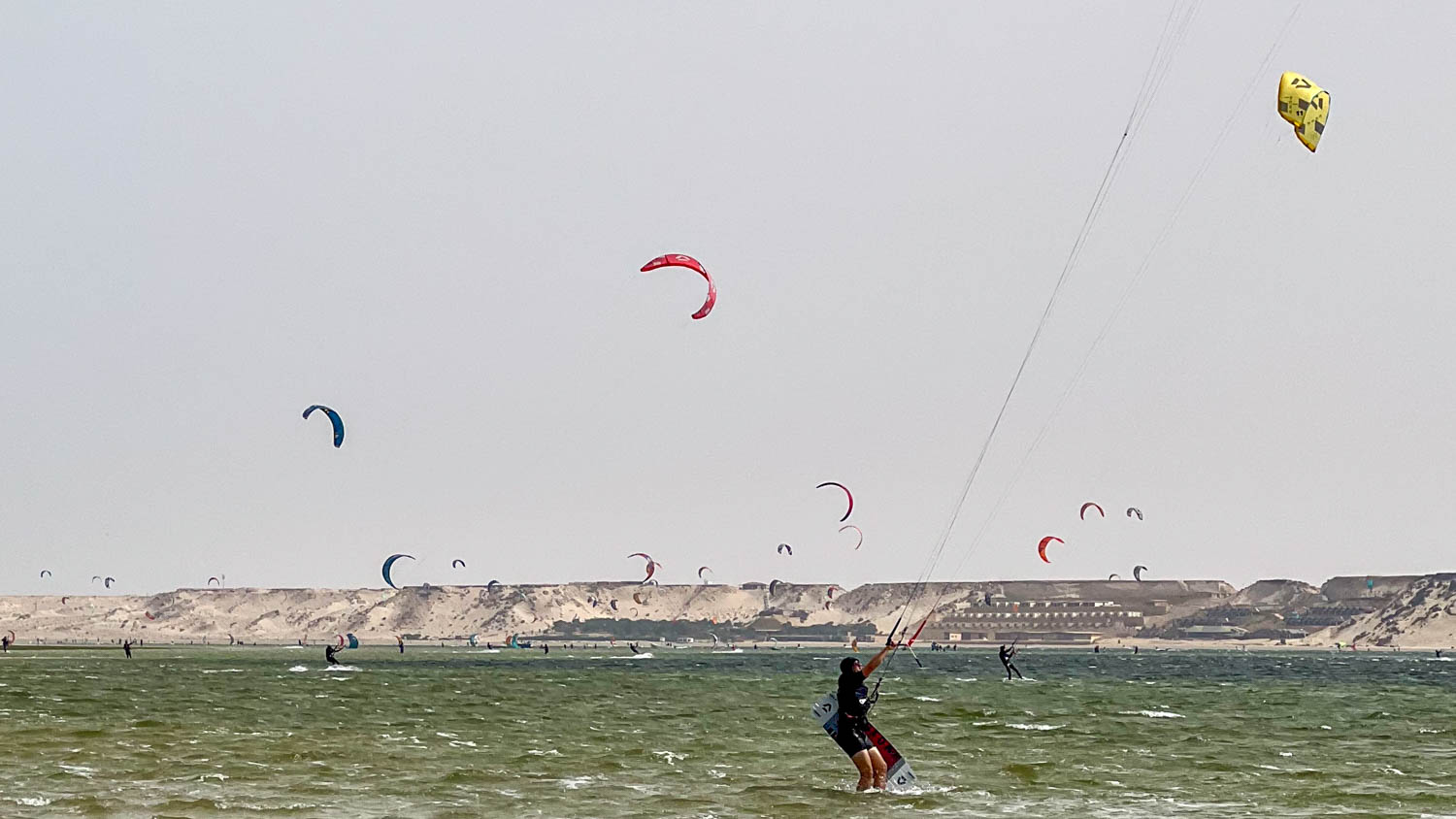 Le parking PK25 où nous avons dormi est le royaume des kite-surfeurs. Le gardien du restaurant qui est fermé l’ouvre pour nous servir un petit déjeuner et nous donner accès aux toilettes. Sur la plage des petits crabes par milliers s’enterrent dans le sable à notre approche.