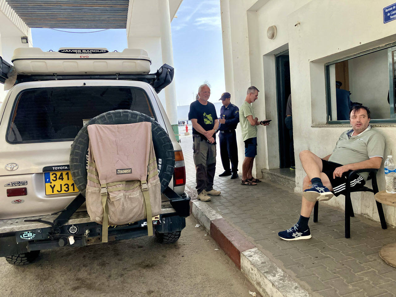 Du coté mauritanien c’est beaucoup moins zen. Orientés par le facilitateur, nous passons et repassons dans les bureaux où des policiers un brin flegmatiques nous font tourner en bourrique pour récupérer nos passeports….Finalement nous y passerons 2 heures dans un tourbillon administratif…Ceci dit beaucoup de touristes y passent la journée…