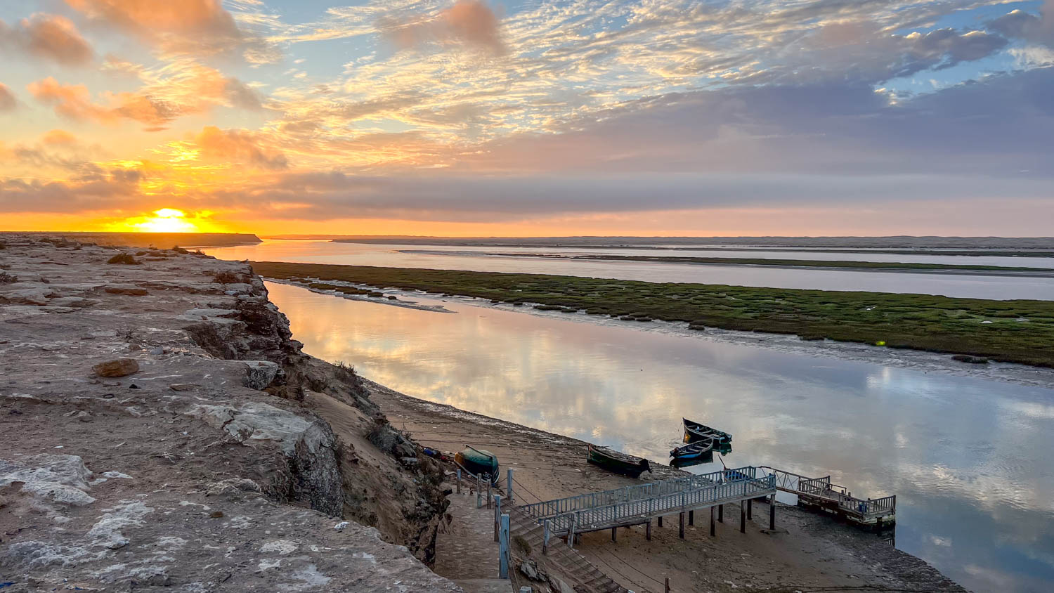 Cette lagune longue d’une vingtaine de kilomètres est séparée de l’océan par un très beau cordon de dunes. C’est un lieu protégé qui offre un refuge naturel à de nombreuses espèces d’oiseaux migrateurs dont le flamant rose. Très joli coucher de soleil. Nous apercevons au loin les dunes et les flamants roses.