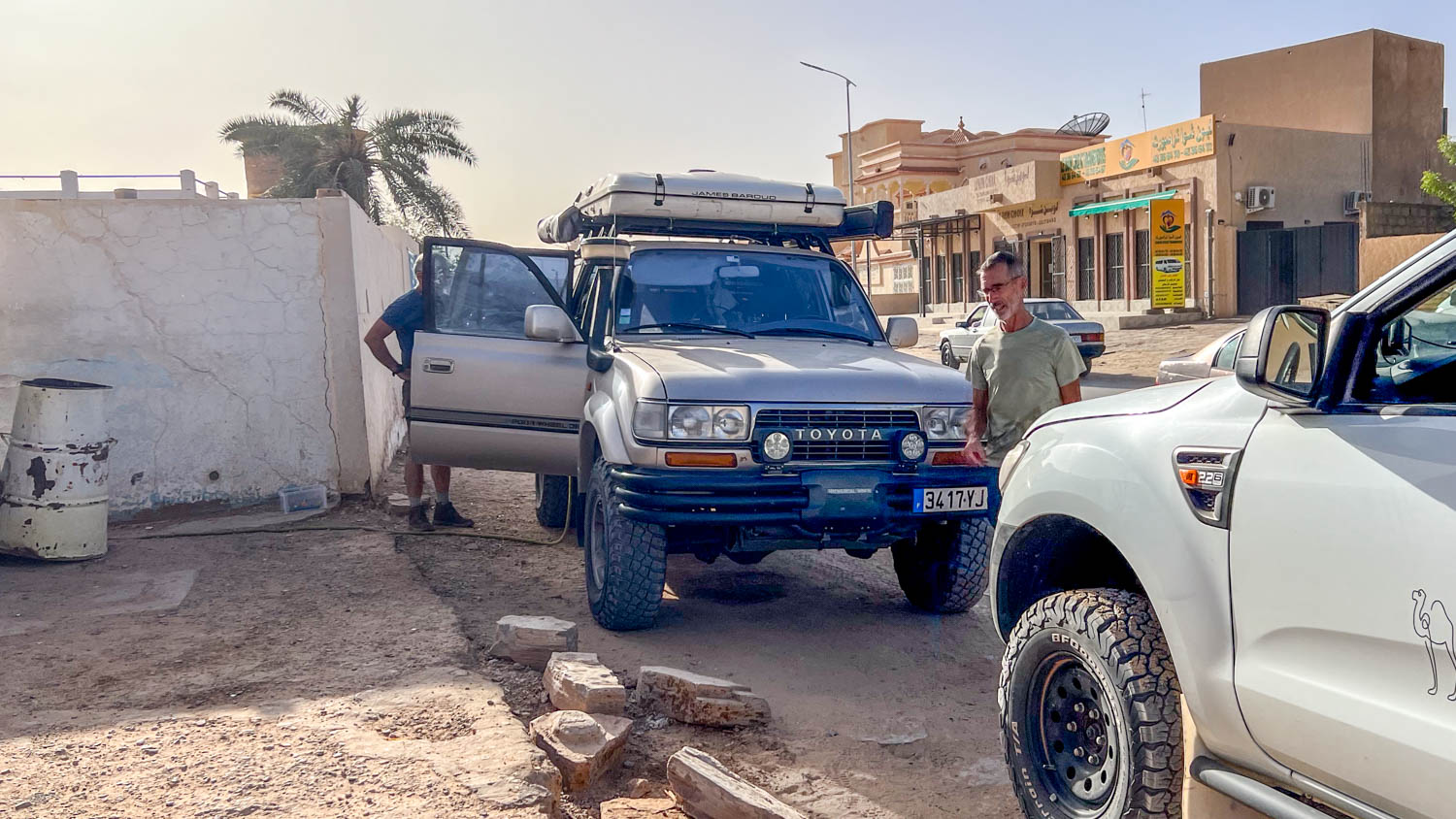 Nous poursuivons jusqu’à Atar, capitale de l’Adrar, et déjeunons de poulet grillé dans un petit restaurant. Reste ensuite à faire le ravitaillement auprès des petits marchands de légumes un peu assaillis par des soi disant « facilitateurs » que nous repoussons gentiment.