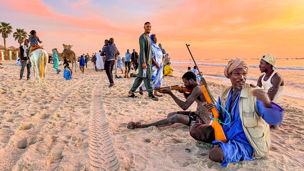 À la plage de Nouakchott, le ballet des pirogues de pêche au milieu d’une foule joyeuse et animée.